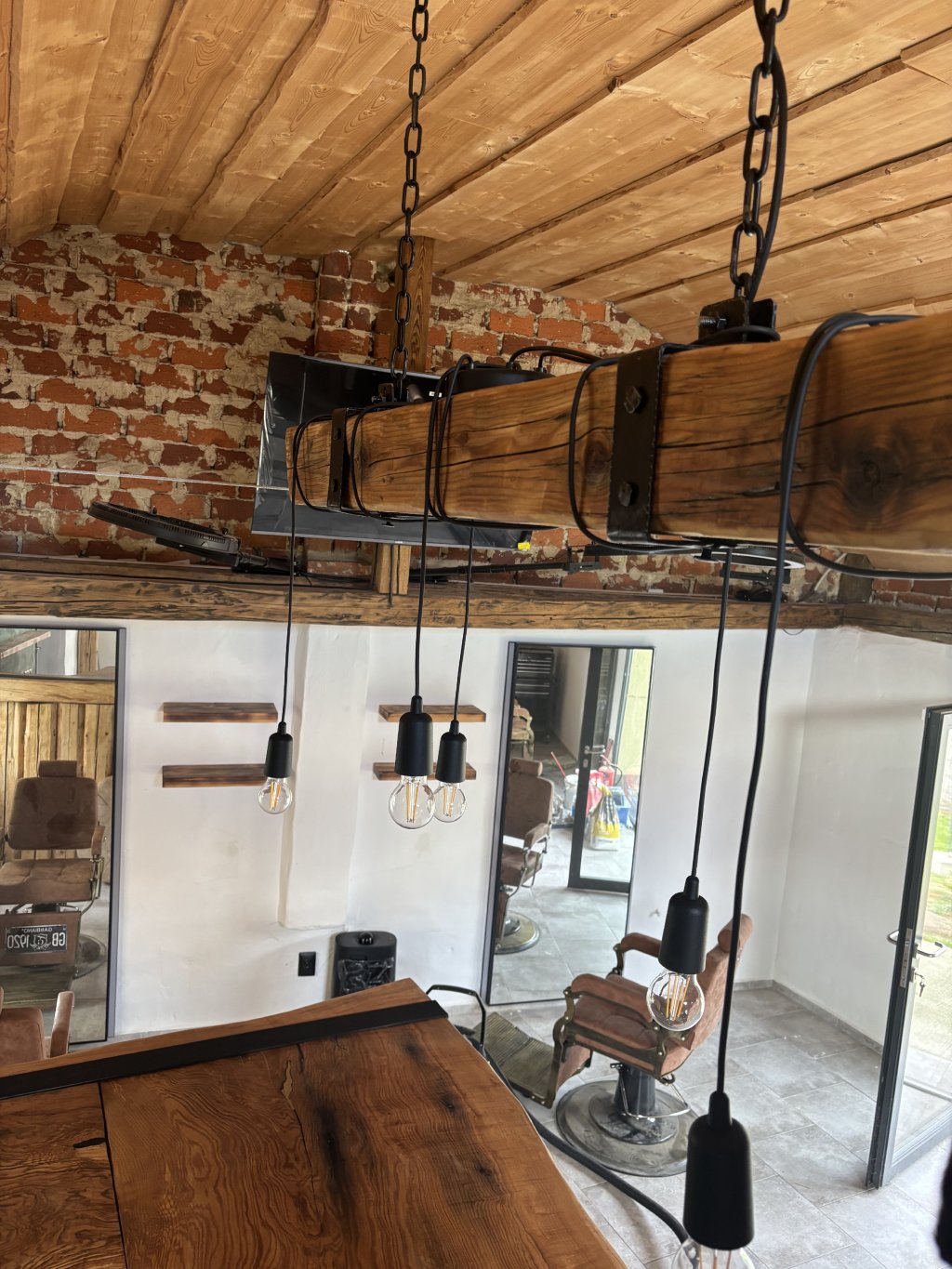 Lampa Nad hlavou spojuje rustikální krásu smrkového dřeva s industriálním designem. Do interiéru vnese nejen světlo, ale i atmosféru přírody a stopu poctivého řemesla.