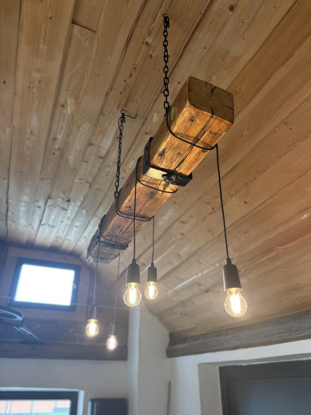 Nad hlavou je lampa vyrobená z masivního smrkového dřeva. V rustikálním a industriálním stylu s lakovaným povrchem působí originálně a výrazně. Je určena do interiéru, ideálně do obývacího pokoje, ložnice nebo jídelny, kde dodá prostoru příjemnou atmosféru. Každý kus je ručně vyrobený originál s poctivým řemeslným zpracováním.