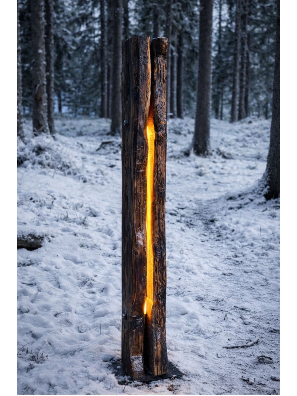 Beskydské slunce je originální lampa vyrobená ze smrkového dřeva pocházejícího ze starých trámů. Každý kus je ručně opracovaný a unikátně upravený tradiční japonskou technikou shou sugi ban, díky které je dřevo ohořelé do černa, a zároveň odolné a esteticky výrazné. Tento rustikální styl dodává lampě jedinečný charakter a přináší do interiéru přírodní kouzlo a útulnou atmosféru.