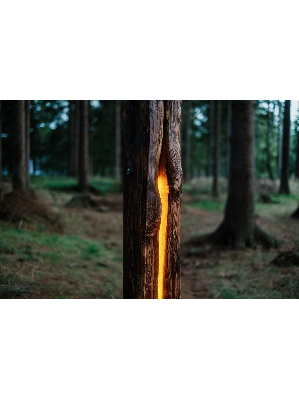 Lampa je vyrobena ze smrkového dřeva pocházejícího ze starých trámů, které mají svou historii. Díky tomu má každý kus jedinečný charakter a do interiéru vnese kousek přírody i minulosti Beskyd.