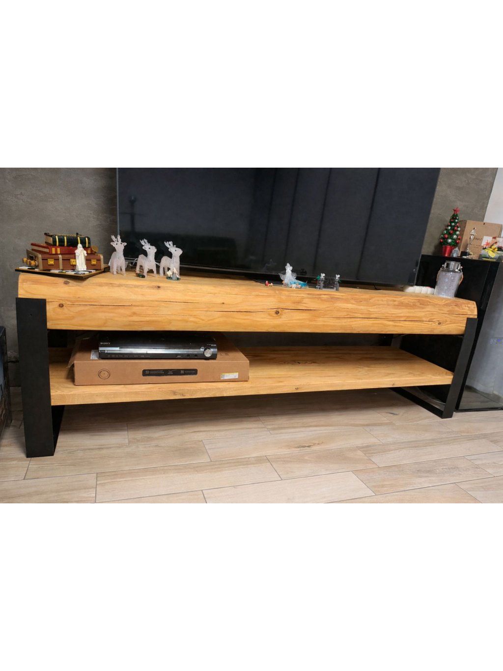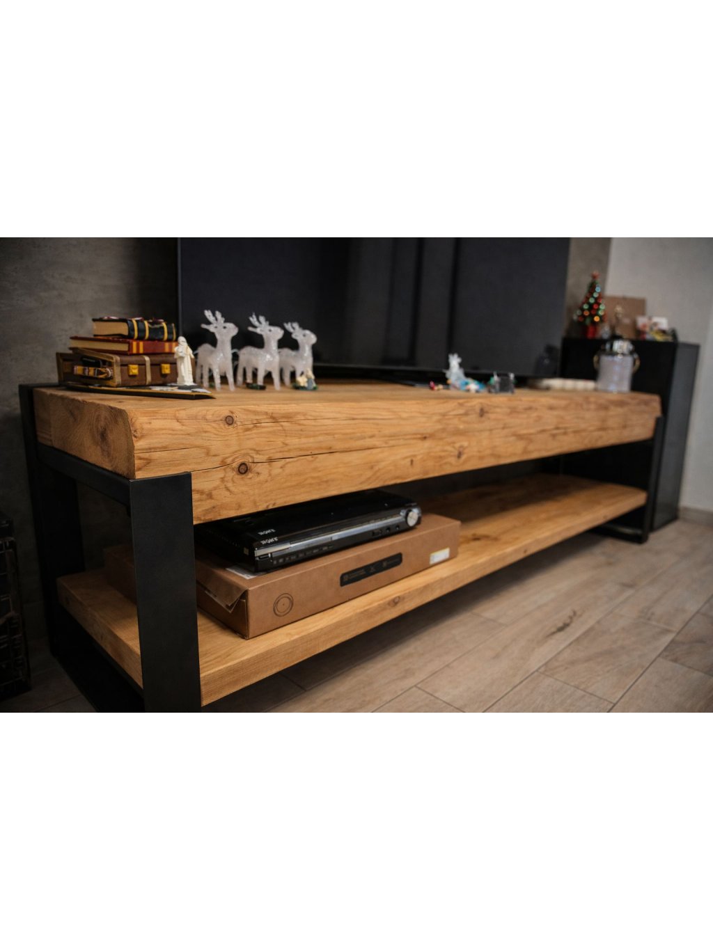 TV trám Síla trámů propojuje masivní sílu přírodního smrkového dřeva s rustikálním a industriálním designem. Do interiéru přináší funkčnost, originalitu i příběh poctivé ruční práce.